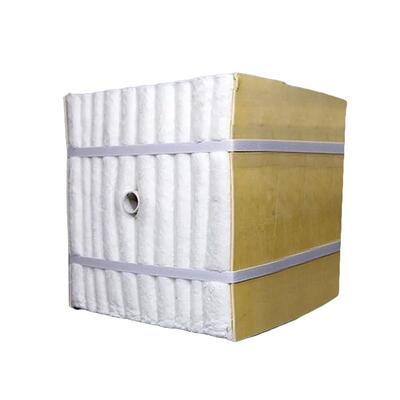 A series of ceramic fiber module was processed by corresponding ceramic fiber needled blanket on special machine based on the structure and size of fiber module. To ensure that compressed to form a integer set without joint between ceramic fiber folded blanket after ceramic fiber folded module have been built, a certain proportional reduction should be maintained in processing owing to the ceramic fiber folded module expand different. Ceramic fiber folded module could be fixed by series of anchors to the stud which in the steel board of industrial furnace.